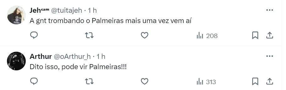 No ano passado, por exemplo, o Atlético-MG perdeu de 1 a 0 para o Palmeiras, em casa, no jogo de ida, pelas oitavas de final. Na volta, os times empataram por 0 a 0, no Allianz Parque, o que acabou eliminando a equipe mineira.