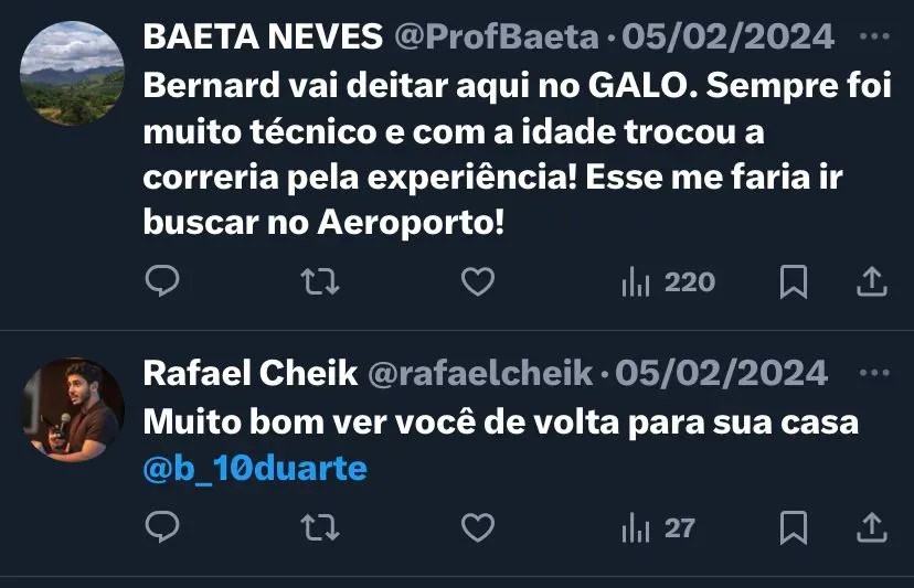 Além disso, o Atlético terá a chegada de alguns reforços na temporada, como o zagueiro Junior Alonso, que ainda não foi anunciado oficialmente. Já Bernard, revelado no Clube, vai voltar ao time depois de mais de 11 anos, e gerando repercussão no elenco alvinegro.