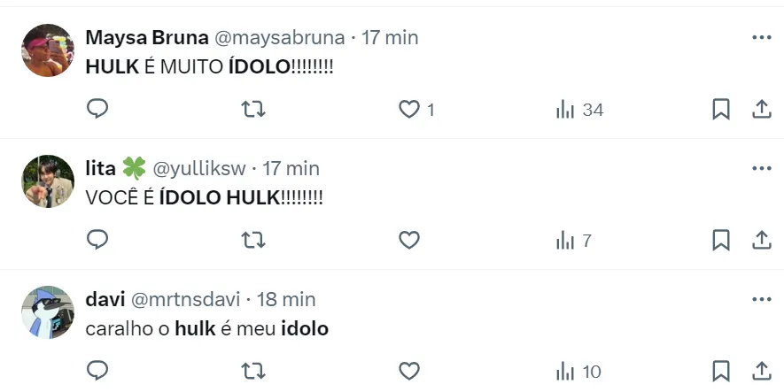 Na rede social do X, antigo Twitter, os torcedores destacaram que Hulk é muito ídolo e decisivo. Foi o tetracampeonato estadual do jogador no Galo (ele também conquistou um Brasileirão, uma Copa do Brasil e uma Supercopa do Brasil).