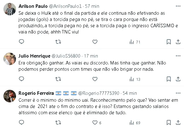O goleiro Everson, um dos líderes do elenco, compartilhou a mesma visão sobre o resultado contra o Criciúma. Ele lamentou a perda de dois pontos em casa e destacou o esforço da equipe, mencionando o desgaste físico após uma sequência intensa de jogos.
