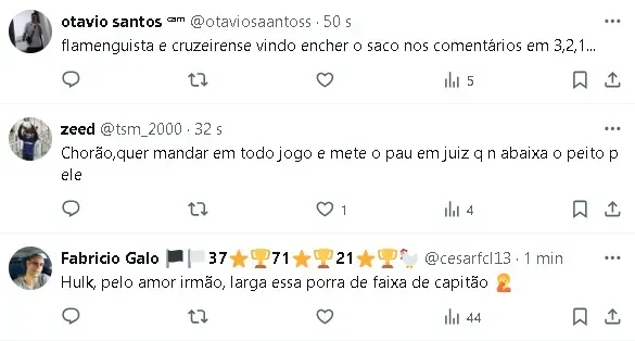 O atacante também apontou a questão da arbitragem não ser um problema exclusivo dele, sugerindo que quando há reclamações de diversos jogadores, é um indicativo claro de que algo precisa ser revisto.