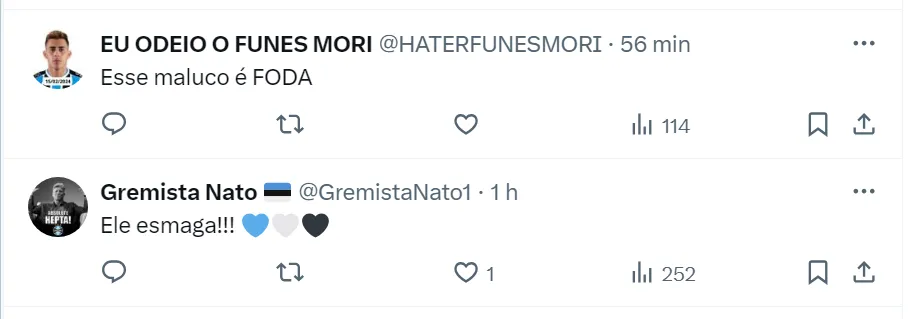 Veja reação dos gremistas na web: