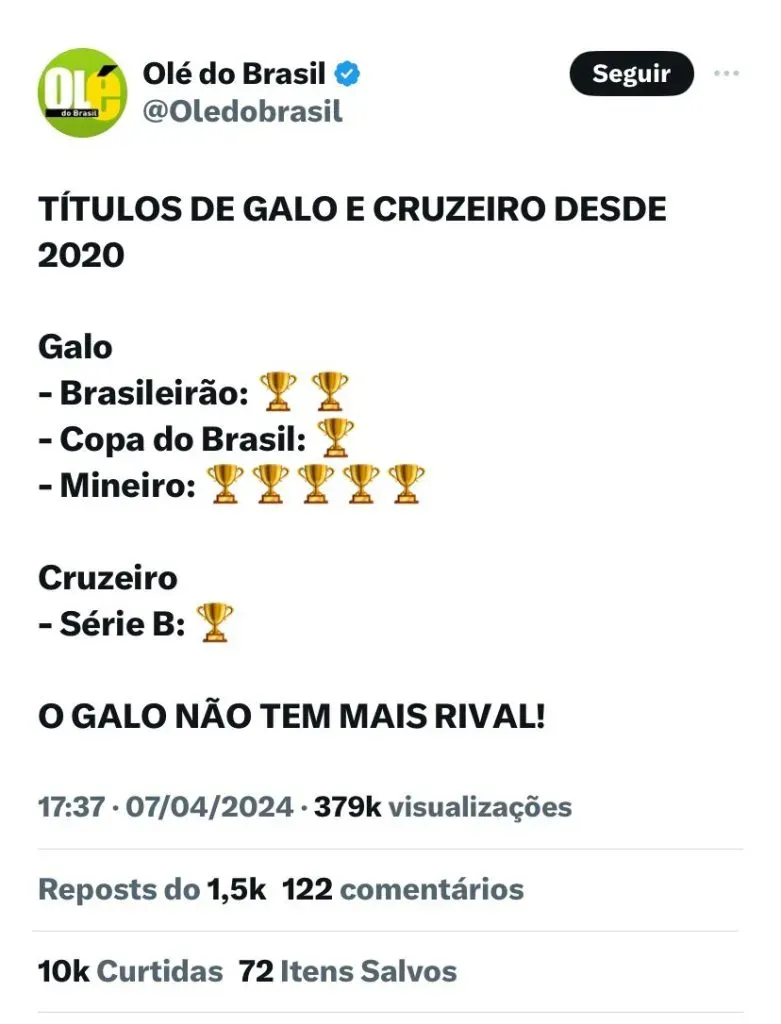 Nos últimos anos, exceto em 2019 e em 2022, o Galo terminou a competição entre os primeiros. Sendo em 2019 em 13º, com 48 pontos, em 2020, 3º com 68, campeão em 2021, com 84 pontos, 2022 em 7º com 58 pontos e em 2023, terminou em 3º com 64.