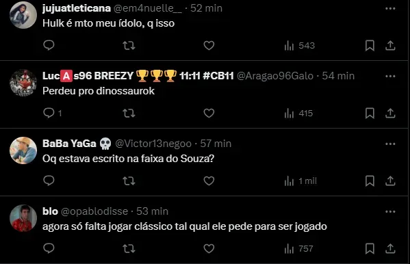 “Parabéns pela classificação, Sousa! Representando nossa Paraíba. Sertão paraibano em festa!“, escreveu Hulk, exaltando o seu estado natal, sem desmerecer o rival Cruzeiro.