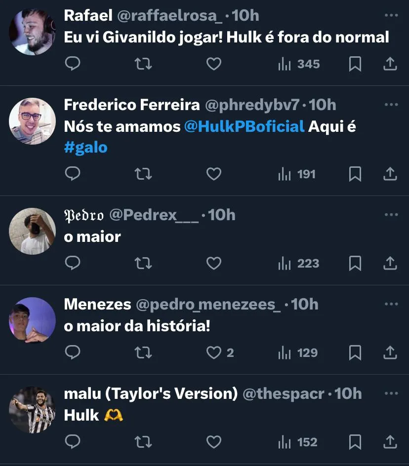 O gol do Hulk foi o de número 16 dele com a camisa do Galo na Libertadores. Assim, ele iguala Zico e Pelé, brasileiros que também tem 16 tentos na competição. Um detalhe importante: o número exato de gols de Pelé divergem em algumas fontes. Em alguns lugares, se fala em 17 tentos do Rei.