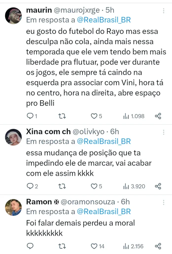 Afim de atingir essa necessidade de um jogo mais vertical, o treinador conta com duas pessoas fundamentais da seleção brasileiras, Vini JR e Rodrygo. O segundo, ex-Santos, andou reclamando do posicionamento que é usado no Real Madrid e na saída do campo, não cumprimentou o Ancelotti. Isso lhe rendeu uma bronca e o técnico comentou na coletiva, “A mudança de Rodrygo é porque ele estava um pouco cansado e eu preferi não arriscar. Ele não me cumprimentou porque acho que esqueceu, não vejo nenhum motivo. Disse a ele para não esquecer mais de cumprimentar quando for substituído”.