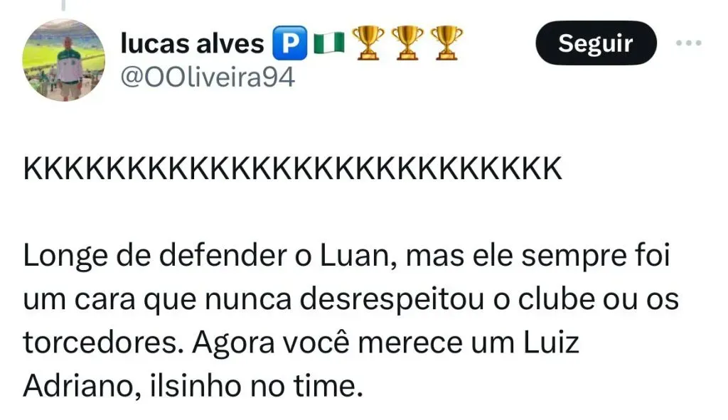 “Após uma longa conversa, um dos diretores palmeirenses chegaram a dizer para o pai do jogador levar o atleta embora do Alviverde na ocasião: Pega o seu jogadorzinho e leva embora daqui, vende para outro lugar”, disse o jogador.