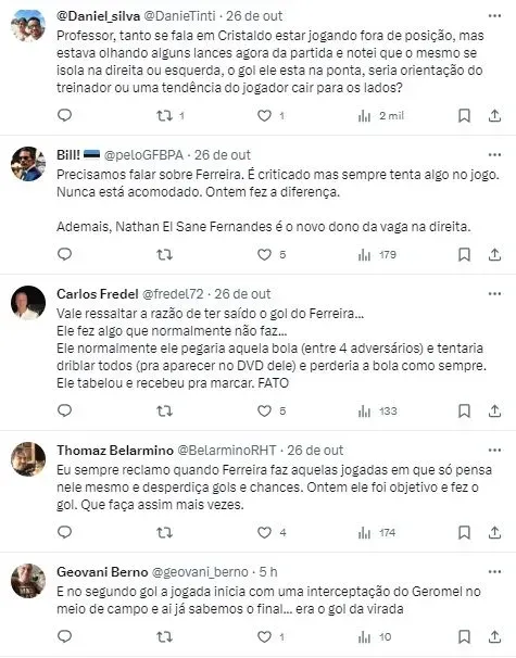 O QUE DIZEM OS TORCEDORES