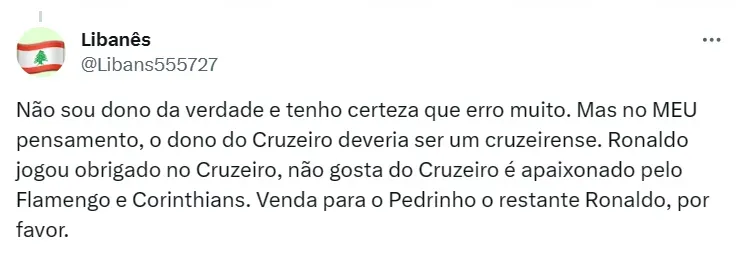 Dentre altos e baixos, Ronaldo vem sendo questionado pela torcida cruzeirense. Era esperado um investimento maior em contratações para 2023, além de jogadores que foram trazidos e não corresponderam em campo.