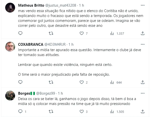 Isto é, além de precisar lidar com a pressão de um virtual rebaixamento, o Coritiba precisou contornar a situação para derrotar o Atlético-MG e conseguiu. Vale destacar que ambos foram substituídos no intervalo daquela partida e nenhuma suspeita veio à toa. No entanto, quando o assunto chegou aos torcedores alviverdes, inúmeras opiniões foram levantadas e o tema dividiu a torcida.