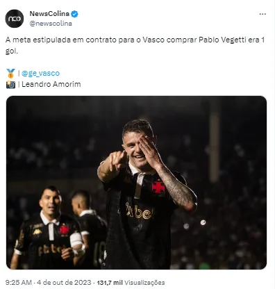 Vegetti é o principal nome do elenco do Vasco desde sua chegada ao Gigante da Colina. Ele chegou ao time carioca na última janela de transferências e vem sendo uma referência no elenco comandado por Ramón Díaz. Porém, um assunto que se tornou assunto hoje diz respeito a uma cláusula contratual do atacante que vazou.