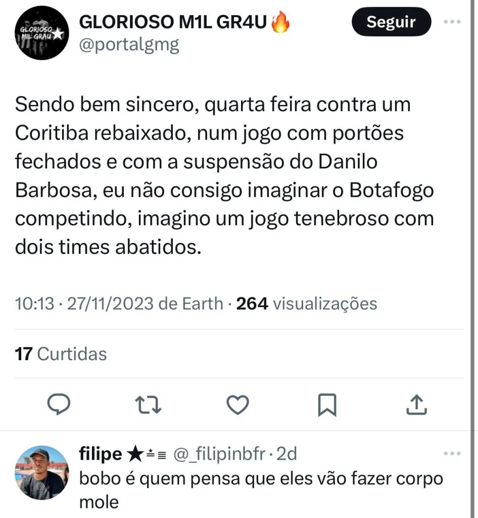 O que pensa o torcedor sobre o duelo entre Botafogo e Coritiba