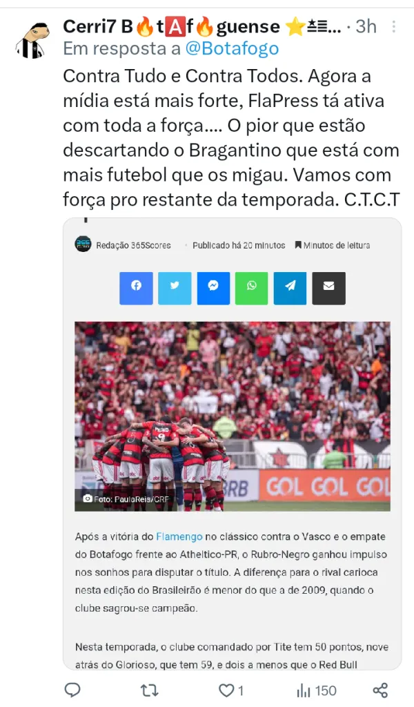 Após ficar fora da rodada e toda essa polêmica, resta saber se isso vai prejudicar a equipe carioca ou vai dar mais força rumo ao título. É válido falar que até o momento as vendas de ingressos foram apenas para os sócios-torcedores. O público geral poderá comprar ingressos a partir de Quinta (26).