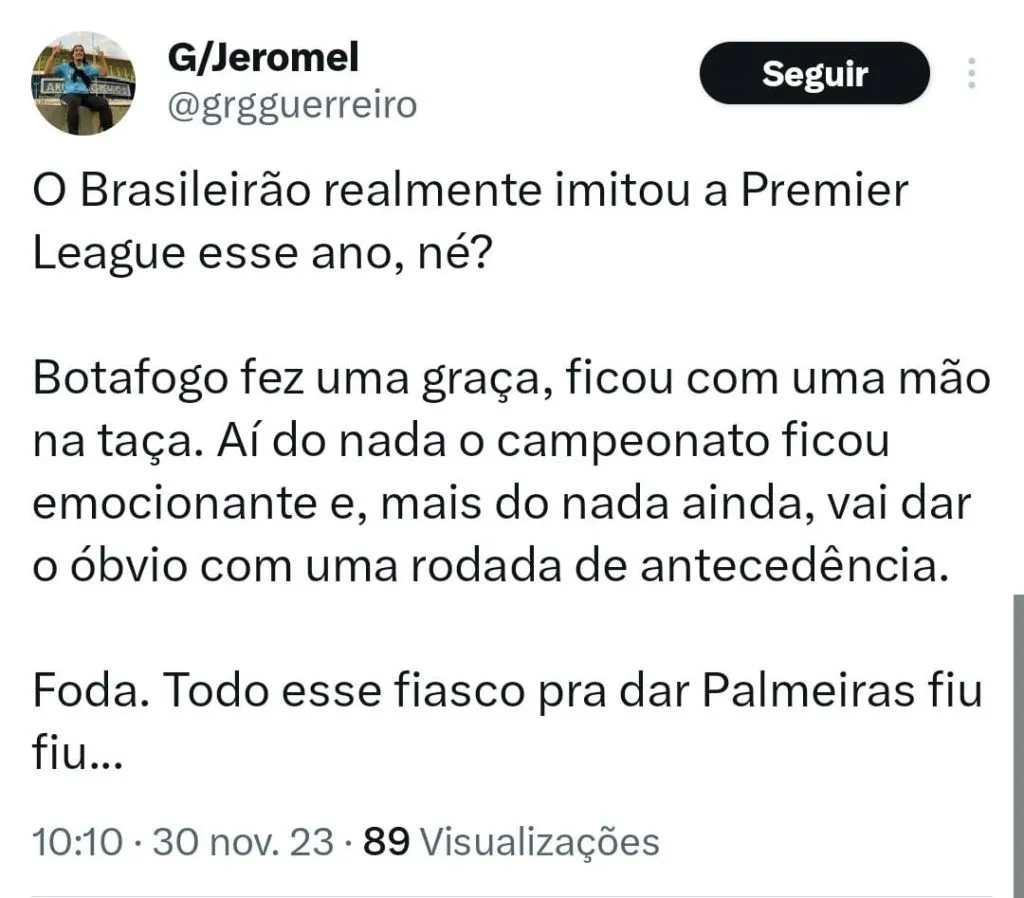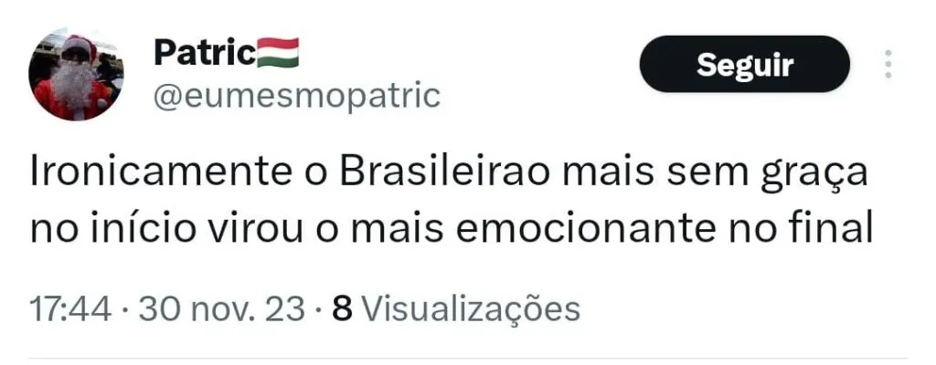 “É por isso que vemos clubes grandes também brigando contra o rebaixamento, como o Santos e o Vasco. Esse é o Campeonato Brasileiro, pelas equipes grandes que tem, em vários estados, deixa tudo muito em aberto a cada ano que passa”.