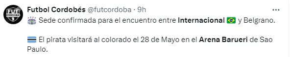 Internacional terá mais dois jogos como mandante na Sul-Americana na fase de grupos. O primeiro deles será no dia 28 de maio contra o Belgrano, pela sexta rodada, e o segundo no dia 8 de junho pela quinta rodada.