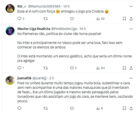 “Afirma-se que Internacional, Palmeiras e Vasco da Gama estão interessados em Fred, que é um dos nomes constantes do Fenerbahçe e um dos maiores contribuintes para o sucesso da equipe”, publicou a fonte acima citada.