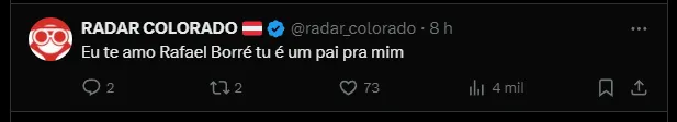 Ainda de acordo com o jornalista, o centroavante colombiano possui o 3° maior salário do Brasil, somente atrás de Everton Ribeiro (R$ 2 milhões) e Dudu (R$ 2,1 milhões).