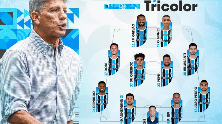 Marche, João Pedro, Rodrigo Ely, Kannemann e Reinaldo; Villasanti, Pepê, Du Queiroz, Dodi; G. Nunes e J.P. Galvão