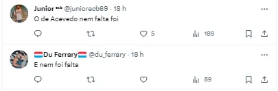 Além disso, o técnico Rogério Ceni contou com uma notícia ruim. Acevedo recebeu dois cartões amarelos contra o Palmeiras e desfalca o time contra o Fluminense na próxima rodada.