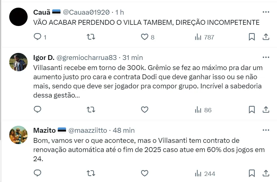 Porém, uma situação vem preocupando o torcedor do Grêmio: a situação contratual do volante Mathías Villasanti, um dos destaques da equipe na última temporada.