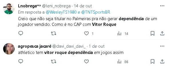 Em contrapartida, quando Vitor Roque estava em campo, o Athletico apresentou um aproveitamento de 56%, com 10 vitórias, sete empates e cinco derrotas.
