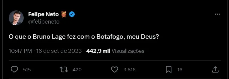 Atualmente o aproveitamento da equipe sob o comando de Bruno Lage é de 46,1%. Caso mantenha o mesmo ritmo nos próximos 15 jogos que faltam até o fim da temporada, o Botafogo faria no máximo mais 21 pontos, finalizando a competição com 72. Conforme informações do portal O Dia. O comandante vem buscando ajustar a equipe para deixar essa má fase para trás e conseguir encerrar essa sequência negativa o quanto antes.