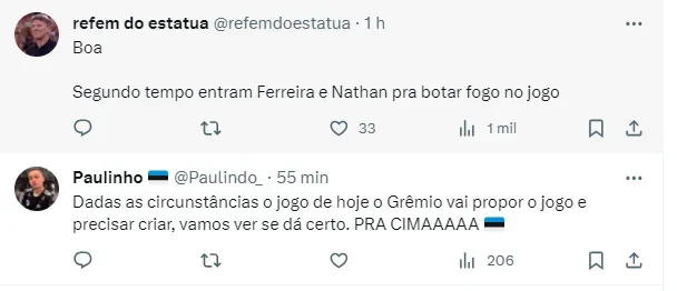 Em tese, com a mudança, a equipe irá com uma postura mais ofensiva do que foi contra os cariocas. Afinal, lá o Grêmio jogou fora de casa e agora irá atuar dentro de seus domínios, com sua torcida em grande número.