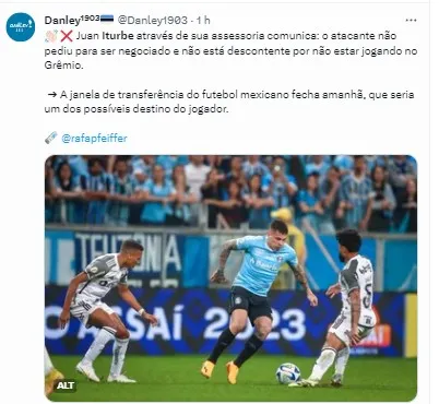 Cesar Cidade Dias, através de sua publicação da coluna no GZH, trouxe uma situação envolvendo o atacante Iturbe. O paraguaio vem tendo seu futuro especulado e uma saída está sendo ventilada.