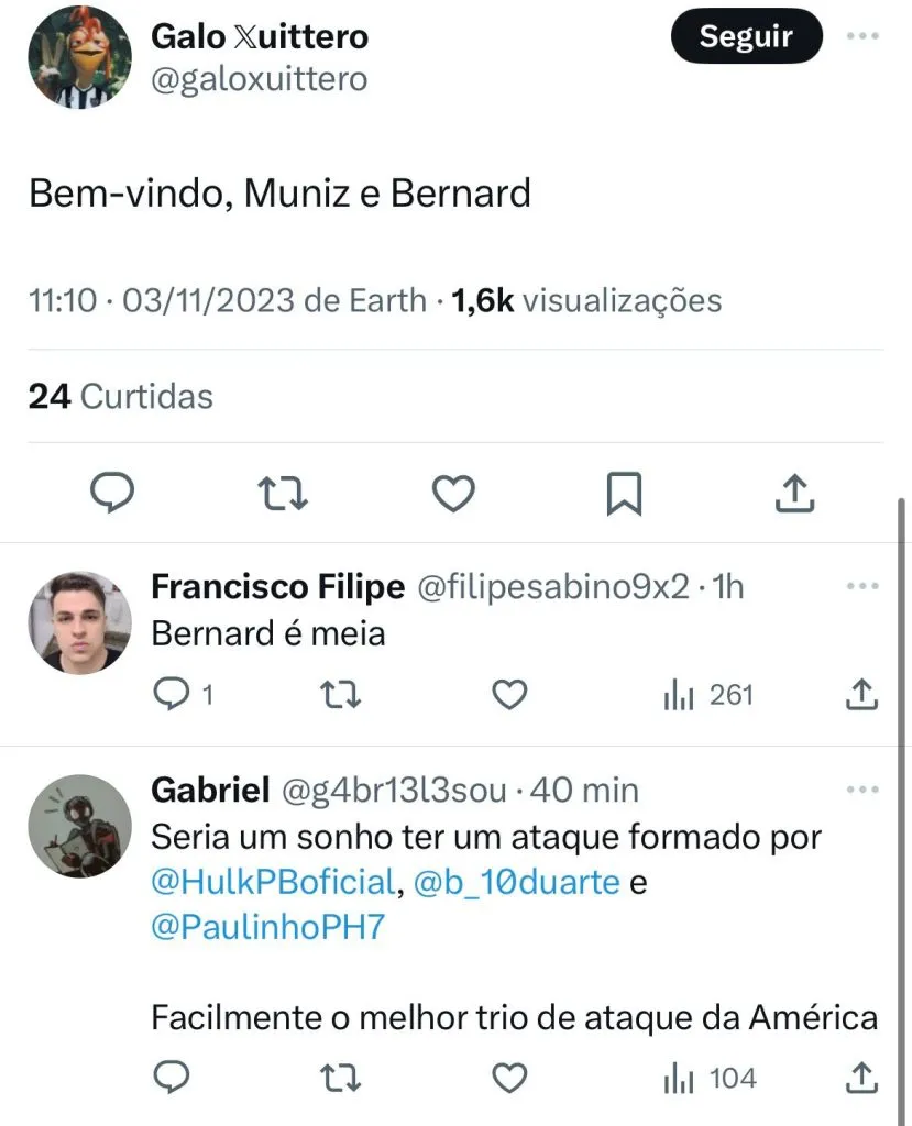 Outras posições poderão ser reforças, porém, os demais investimentos só serão discutidos e se tornarão públicos após o final do Brasileirão. O sonho do Galo neste momento é repatriar o centroavante Rodrigo Muniz, do Fulham, da Inglaterra.