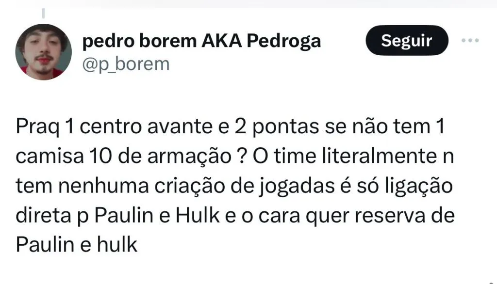Até por isso, Felipão já começa a pensar em 2024. O medalhão identificou carências no elenco e gostaria de fazer algumas mudanças no perfil do elenco e na busca por jogadores. A ideia do veterano é ter mais dois pontas e mais um centroavante.