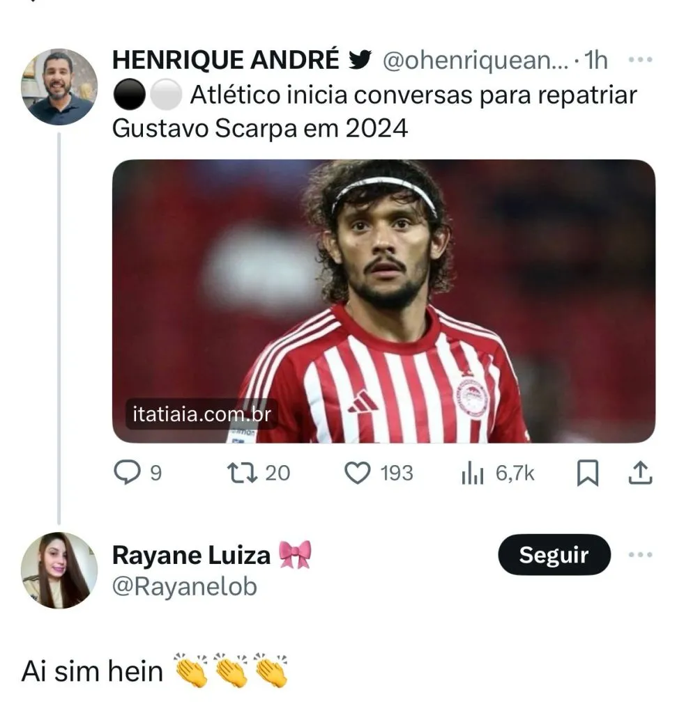 Atualmente, Gustavo Scarpa está emprestado ao Olympiacos, da Grécia, mas também não vem fazendo uma boa temporada no time greco. Com isso, duas chances de voltar ao Brasil crescem a cada dia.