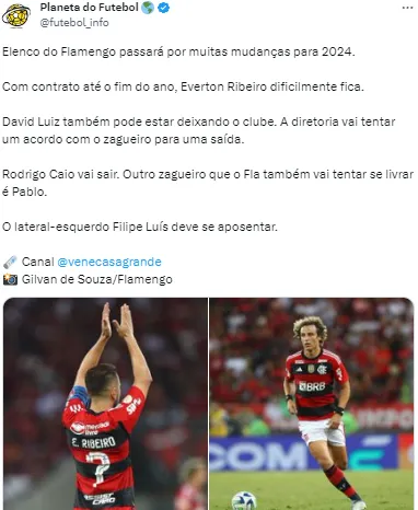 O zagueiro não vai ficar na equipe carioca e já teria até se despedido do elenco após a final da Copa do Brasil. “Outro jogador que já se despediu de seus companheiros no vestiário do Flamengo e que vai ficar livre no mercado é o Rodrigo Caio”.