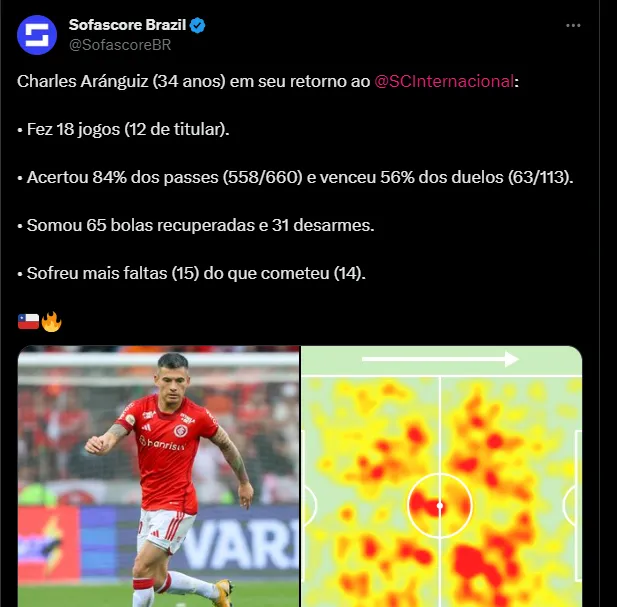 Além de Aránguiz, o Internacional terá outros desfalques para o duelo diante do Bahia. Com 12 rodadas pela frente, o Colorado tem uma missão e tanto rumo à classificação para a próxima edição da Libertadores da América. Na 12ª colocação do Brasileirão, a equipe comandada por Eduardo Coudet soma 32 pontos, 12 tentos a menos do que o Palmeiras, que abre o G-4 da disputa, e 10 a menos que o Fortaleza, atualmente na 6ª colocação, que dá acesso para a pré-Libertadores.