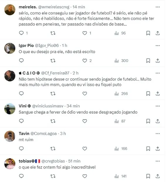 Dentre vários que acabaram recebendo comentários negativos, um deles, em especial, viu os vascaínos ‘descerem a lenha’ após o apito final, com alguns, inclusive, cobrando uma demissão imediata.