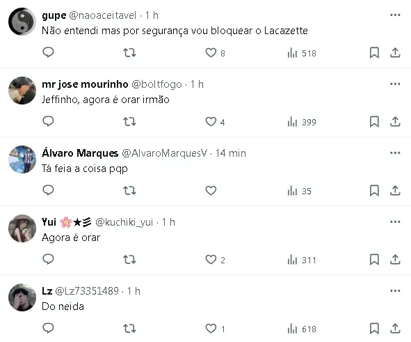 O GE procurou o Resende, o Glorioso e o estafe de Jeffinho para comentar o caso, mas as três partes optaram por não se pronunciar. O atacante, por sua vez, segue emprestado pelo Lyon ao Botafogo até dezembro de 2024. O jogador, que atualmente se recupera de uma lesão na coxa direita, marcou cinco gols e deu duas assistências em 18 partidas nesta temporada.