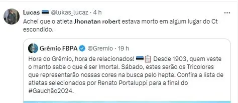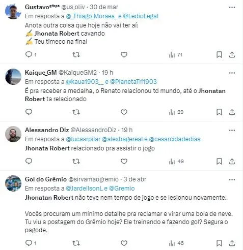 Contudo, a previsão para que Jhonata fique à disposição do técnico Renato Portaluppi, indica que o retorno pelo do atleta aconteça em junho. As informações são do Portal do Gremista.