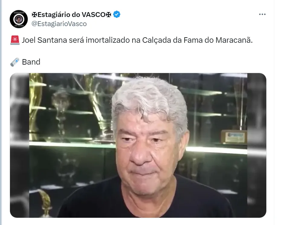 O ex-treinador também analisou o momento do Cruz-Maltino: “Vamos torcer para o Vasco se recuperar para não passar por essas dificuldades todas. Eu acho que está sendo muito difícil”, completou Joel, que foi imortalizado na Calçada da Fama, do Maracanã, nesta segunda (1).
