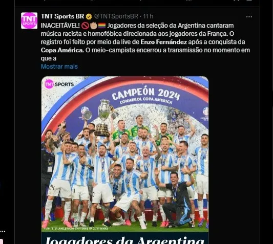 Enzo Fernández vem protagonizando momentos complicados após o título da Copa América 2024 conquistado pela Argentina. O volante postou nas redes sociais um cântico racista cantado por toda delegação da Argentina.