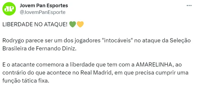 Antes de retornar ao Real Madrid, o jovem atacante tem ainda um último compromisso com a Seleção Brasileira de Fernando Diniz. Nesta terça-feira (17), o Brasil entra em campo contra o Uruguai para mais uma etapa das eliminatórias para a Copa do Mundo de 2026. O confronto acontece no Estádio Centenário, em Montevidéu, às 21h (horário de Brasília).