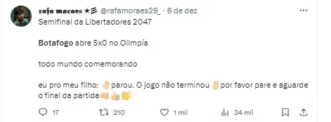 “Mas, na reta final, acabou não conseguindo os pontos necessários, o Palmeiras, com a regularidade, junto com o Atlético-MG, Flamengo, eles conseguiram ter uma reação, ficaram brigando pelo título até o final. O Palmeiras mais uma vez foi eficiente, mas acreditava que esse ano o Botafogo poderia ter saído como campeão”, continuou.