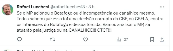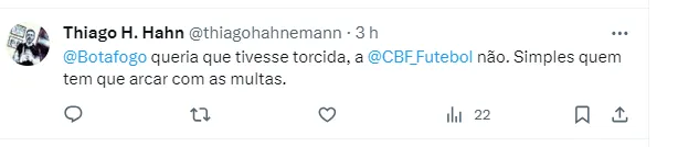 Entretanto, para o jornalista Eduardo Mansell, colunista do Blog do Fogão Net, a CBF quem deveria arcar com os valores de indenização, uma vez que a entidade quem definiu que o restante do jogo fosse com ausência de público.