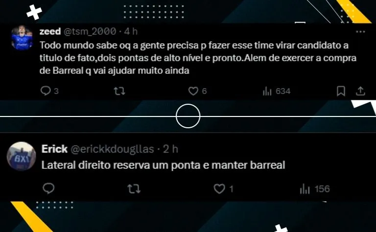 “Até citei dois atletas que estão ficando livres de contrato. Luiz Fernando faz grande campeonato pelo Atlético-GO e Matheusinho, que é o destaque do Criciúma”, afirmou o jornalista, que em seguida divulgou a fala do dirigente cruzeirense.