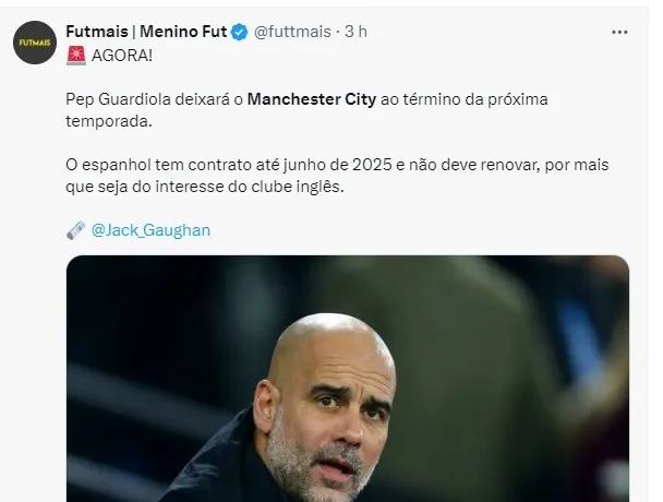 Toda temporada Pep Guardiola é questionado se permanecerá no clube. Porém, pela primeira vez o treinador externou a possibilidade de não seguir no time ao término do contrato em junho de 2025.
