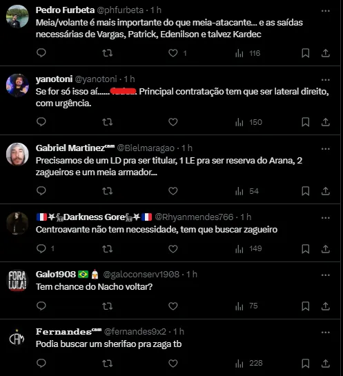 Entre as prioridades para reforçar o plantel, destacam-se a busca por um meia-atacante, um atacante de velocidade e um centroavante. Já na defesa, não haverá investimentos. Essas posições estratégicas são consideradas fundamentais para fortalecer o time e garantir um desempenho competitivo nas competições de 2024.