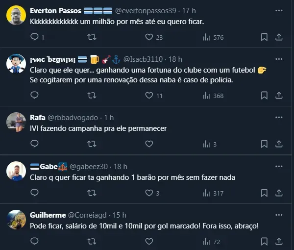 Gremistas criticam JP Galvão