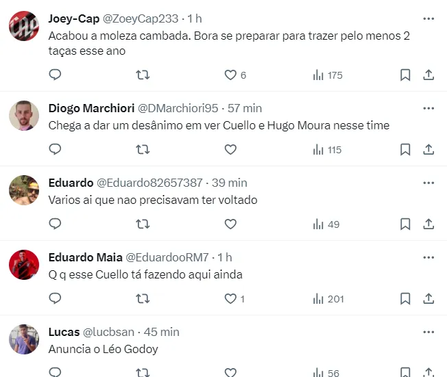 Os reforços confirmados são o lateral-direito Leo Godoy, o zagueiro Mateo Gamarra e o atacante Romeo Benítez, que foram os atletas contratados pelo Athletico para 2024.