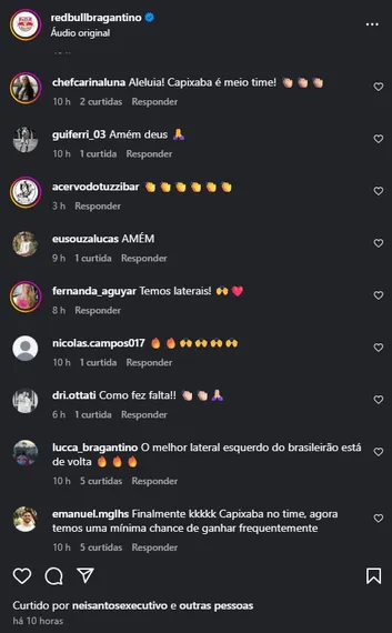 Assim que a notícia do retorno dos jogadores foi divulgada, os torcedores do Braga encheram as redes sociais de comentários. Entre as mensagens, destacaram-se frases como “Aleluia! Capixaba é meio time!” e “Temos laterais novamente!”.