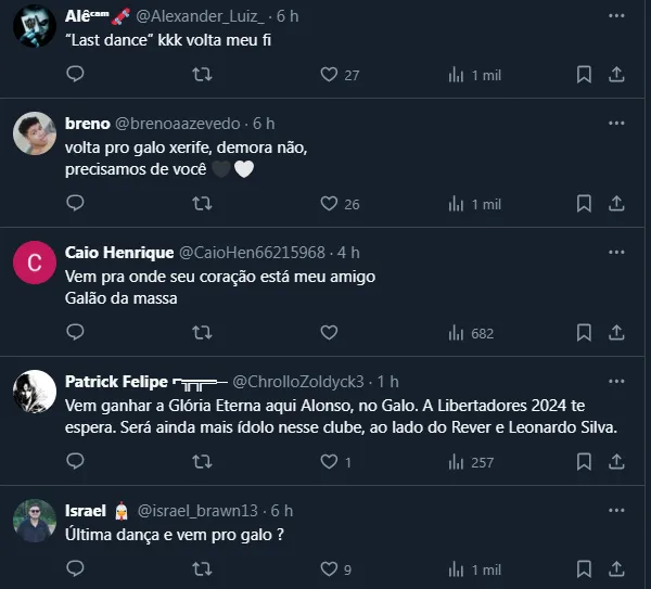 Na foto publicada pelo defensor, ele escreveu a seguinte mensagem: “Last dance! We can do it“, que na tradução significa algo do tipo: “última dança, vamos fazer isso“. Não à toa, vários torcedores comentaram pedindo o seu retorno.