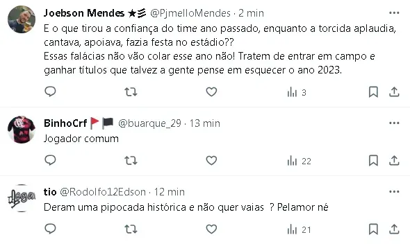 O atacante reconhece a necessidade de virar a página do passado e atrair novamente o apoio da torcida, lembrando que o jogador precisa ter uma mente positiva para responder em campo. O jogador afirmou que as vaias da torcida ‘tiram a confiança’ dos jogadores.