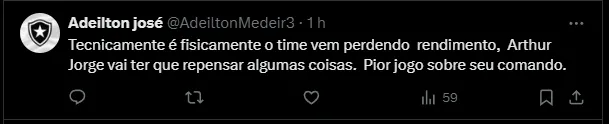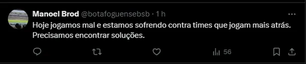 A situação já preocupa boa parte da torcida botafoguense, afinal, é o artilheiro da equipe. Na derrota para o Criciúma, o parceiro no ataque foi Tiquinho Soares que, em todas as competições, soma seis gols em 2024.
